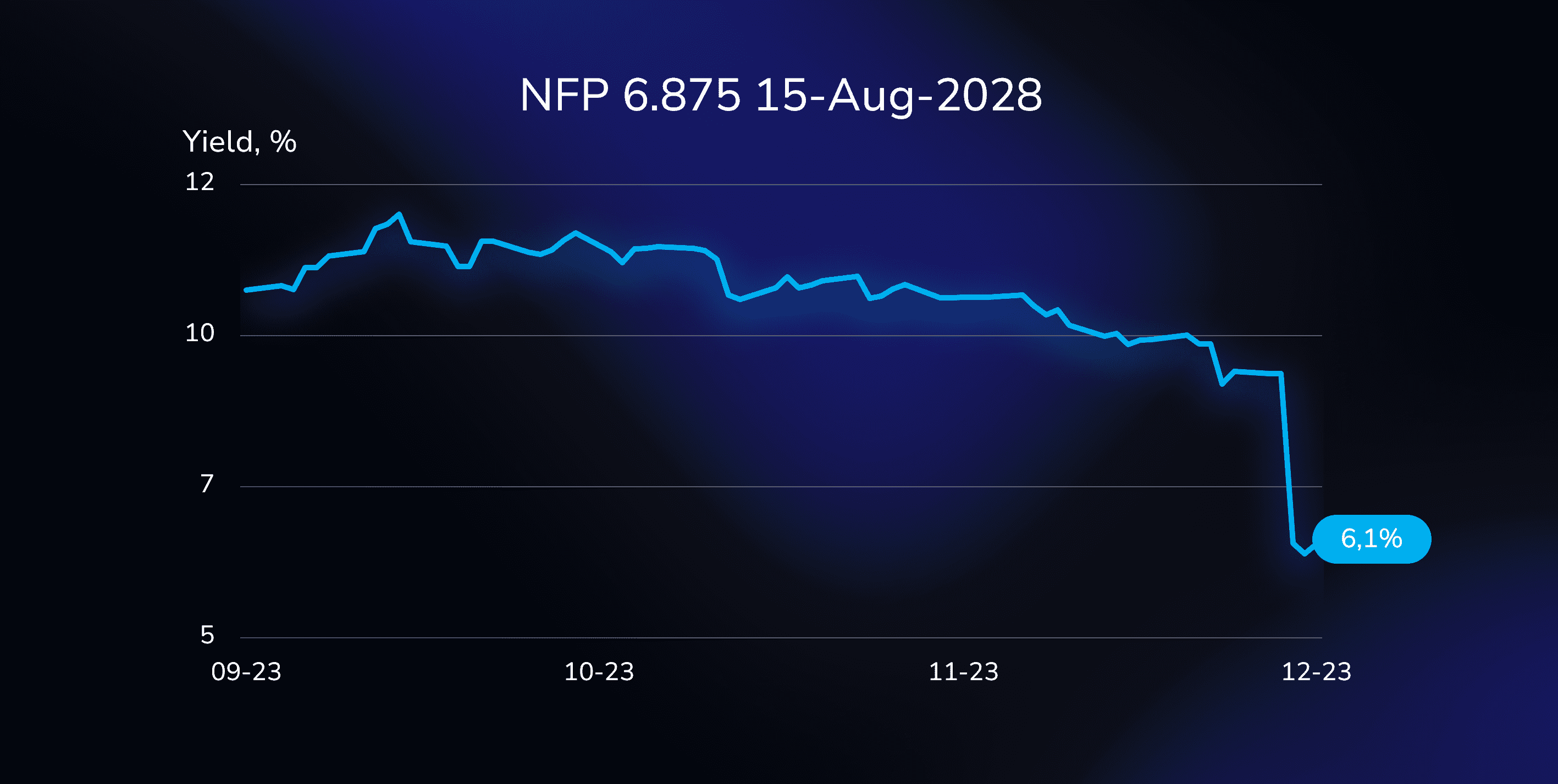 The NFP 6.875 15-AUG-2028 USD (US65342RAD26) bond has witnessed a significant yield reduction of 285 basis points to reach 6.1% over the course of a week.
