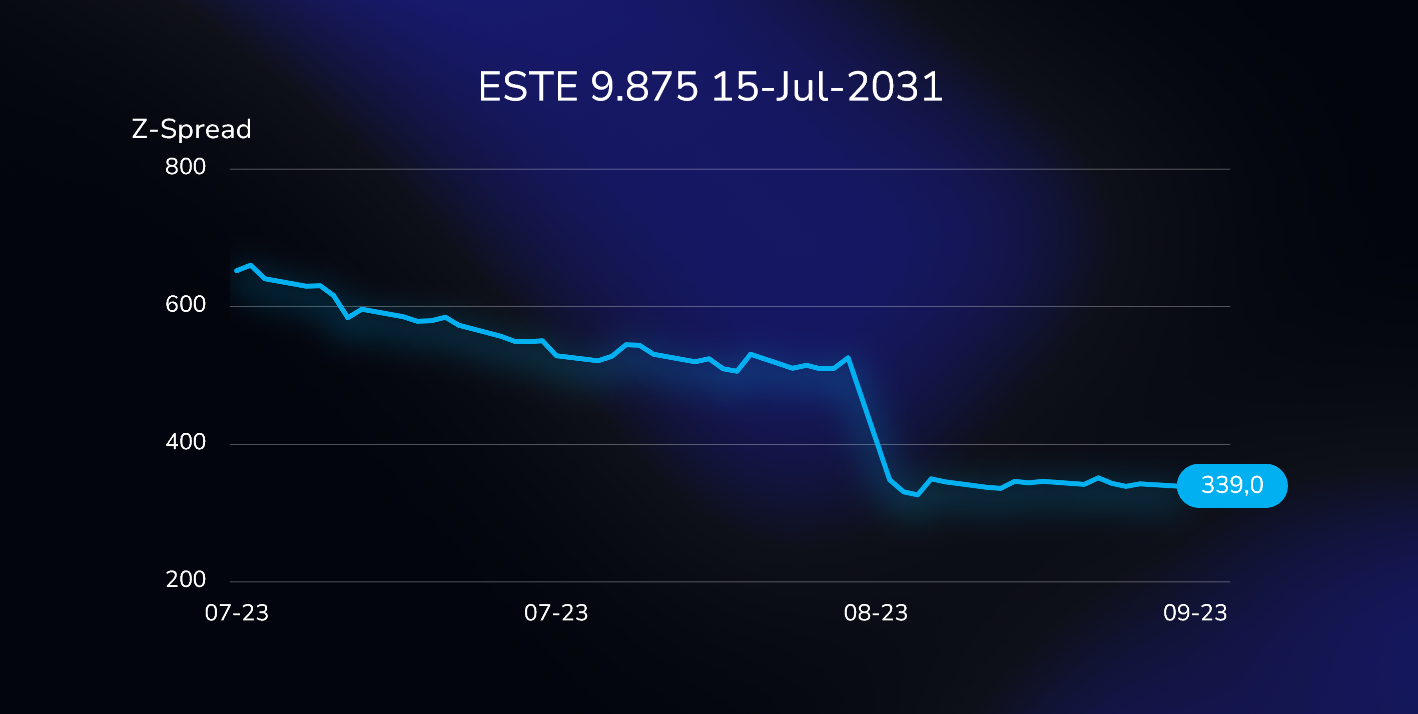 The Z-spread for Earthstone Energy's bond ESTE 9.875 15-Jul-2031 (US27034RAC79) experienced a significant decrease of 162 basis points due to the recent announcement of a major acquisition deal involving Earthstone Energy by Permian Resources Corp.