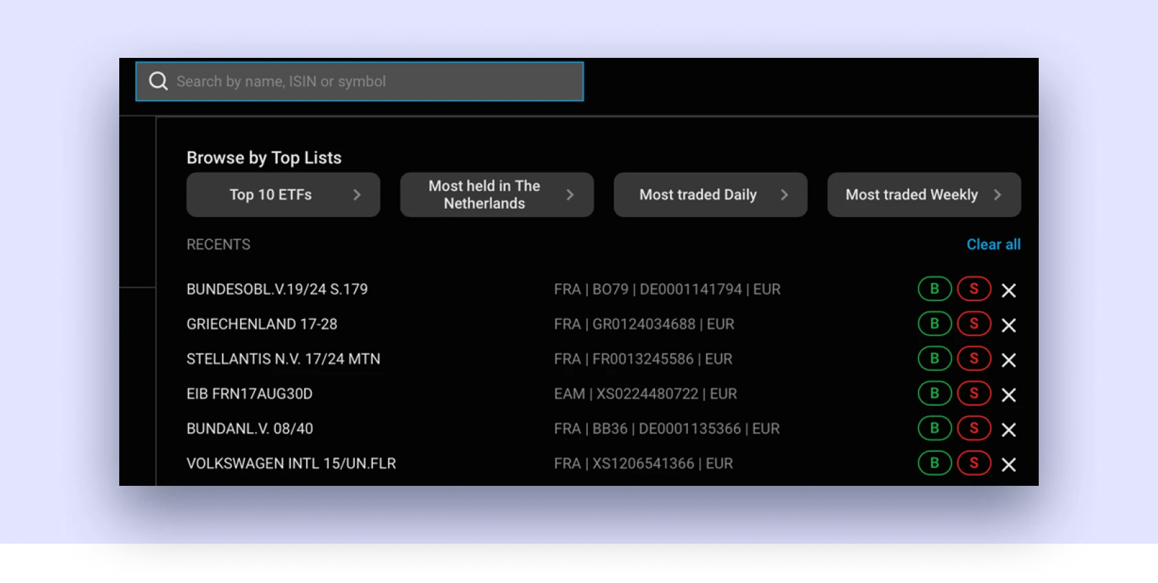 flatexDeGiro presents a user-friendly platform for European individuals looking to dive into bond trading. Beyond bonds, this broker also provides access to shares, ETFs, options, and futures.