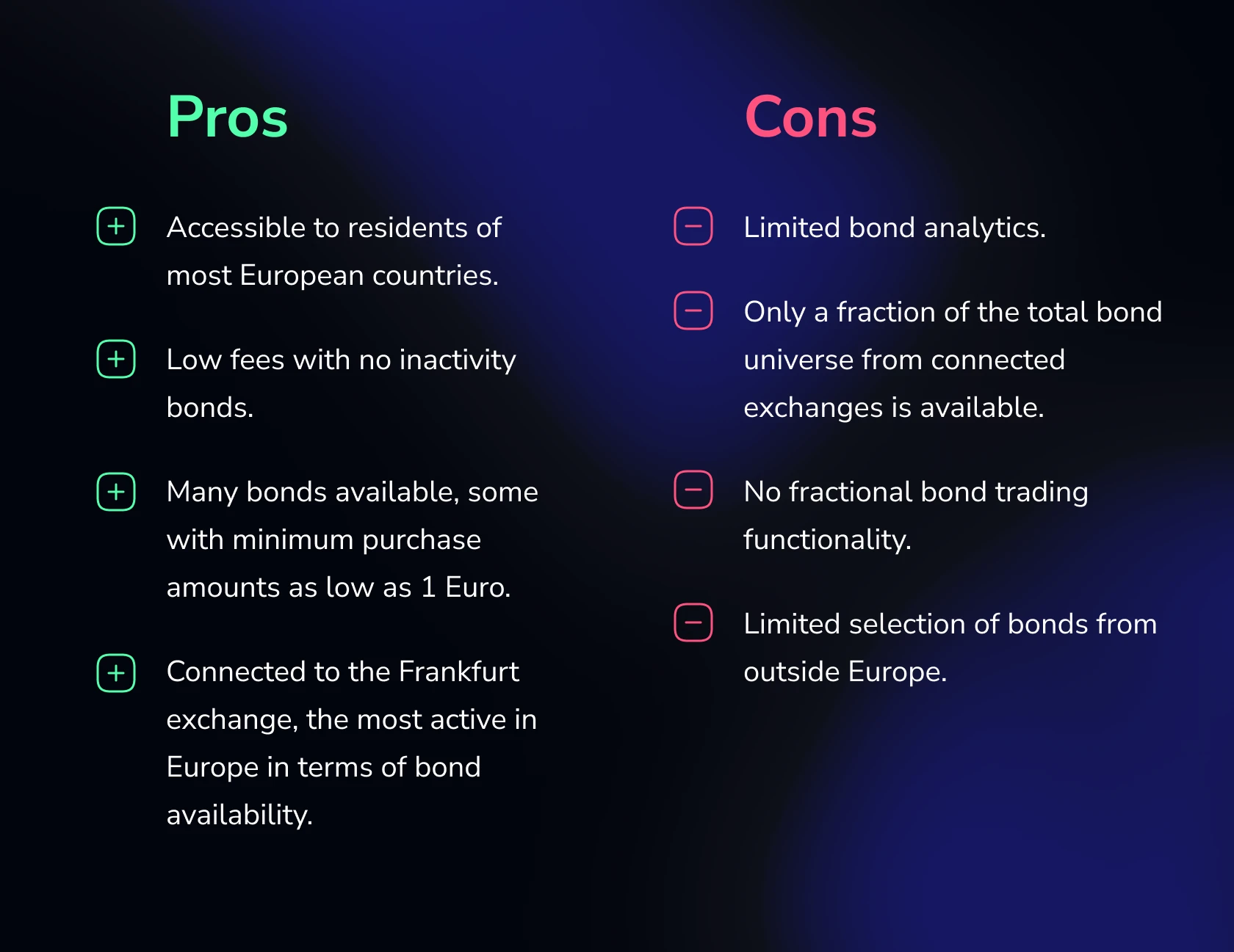 Here is the main pros and cons of using DEGIRO for trading European bonds: