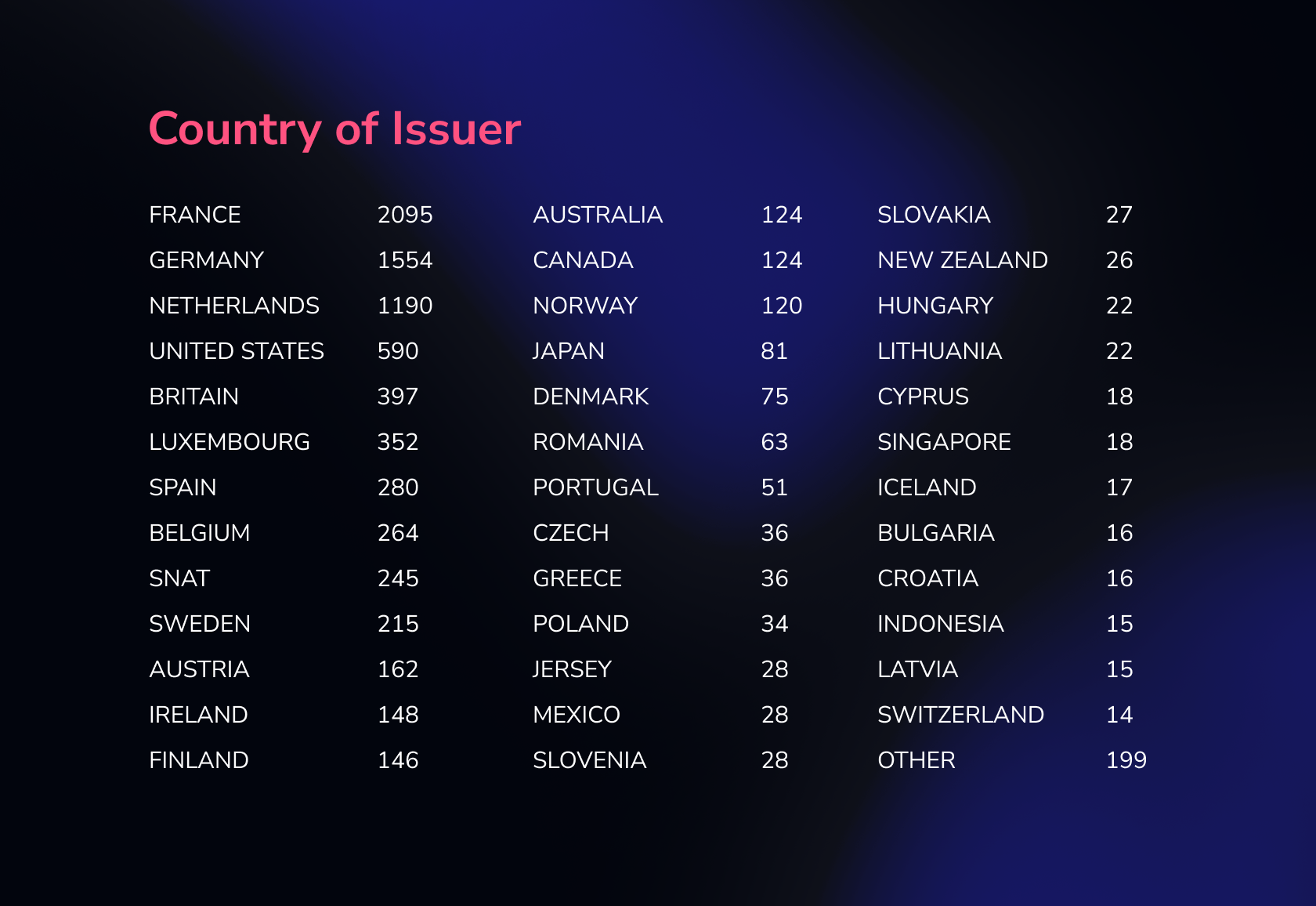 Following is an overview of the Euro-denominated bonds available on IB, categorized by country and industry: