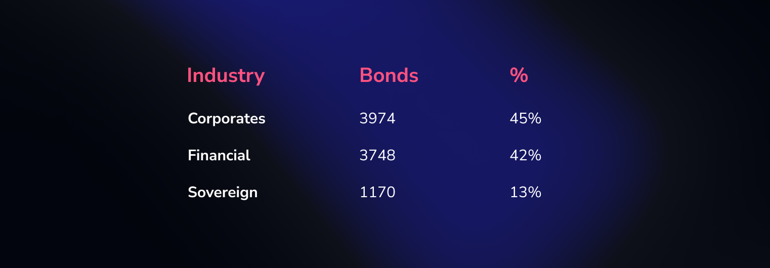 The platform features approximately 30,000 corporate bonds and around 4,000 sovereign bonds, available in currencies like USD, CAD, GBP, and EUR.