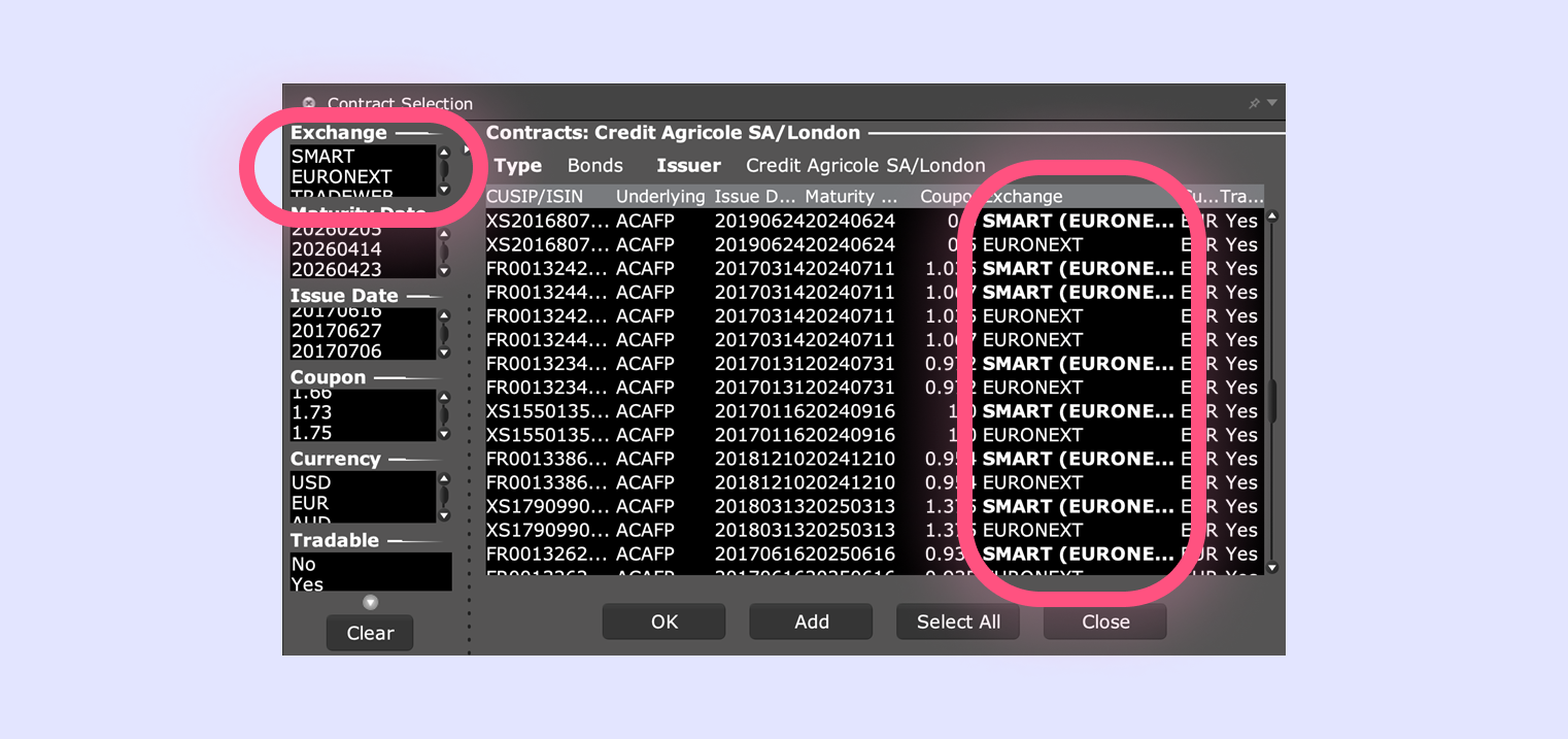 IB connects to 150 worldwide exchanges and sources bonds from these platforms as well as its own Alternative Trading System (ATS). This ATS functions as an internal over-the-counter (OTC) system for matching buyers and sellers outside traditional exchanges.