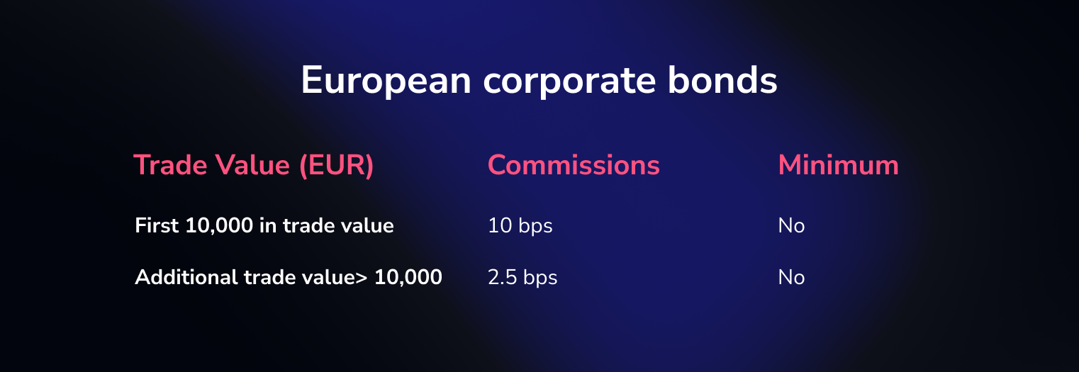 Non-US residents are enrolled in the IBKR Pro tariff plan, with the following fee structure for European bonds: