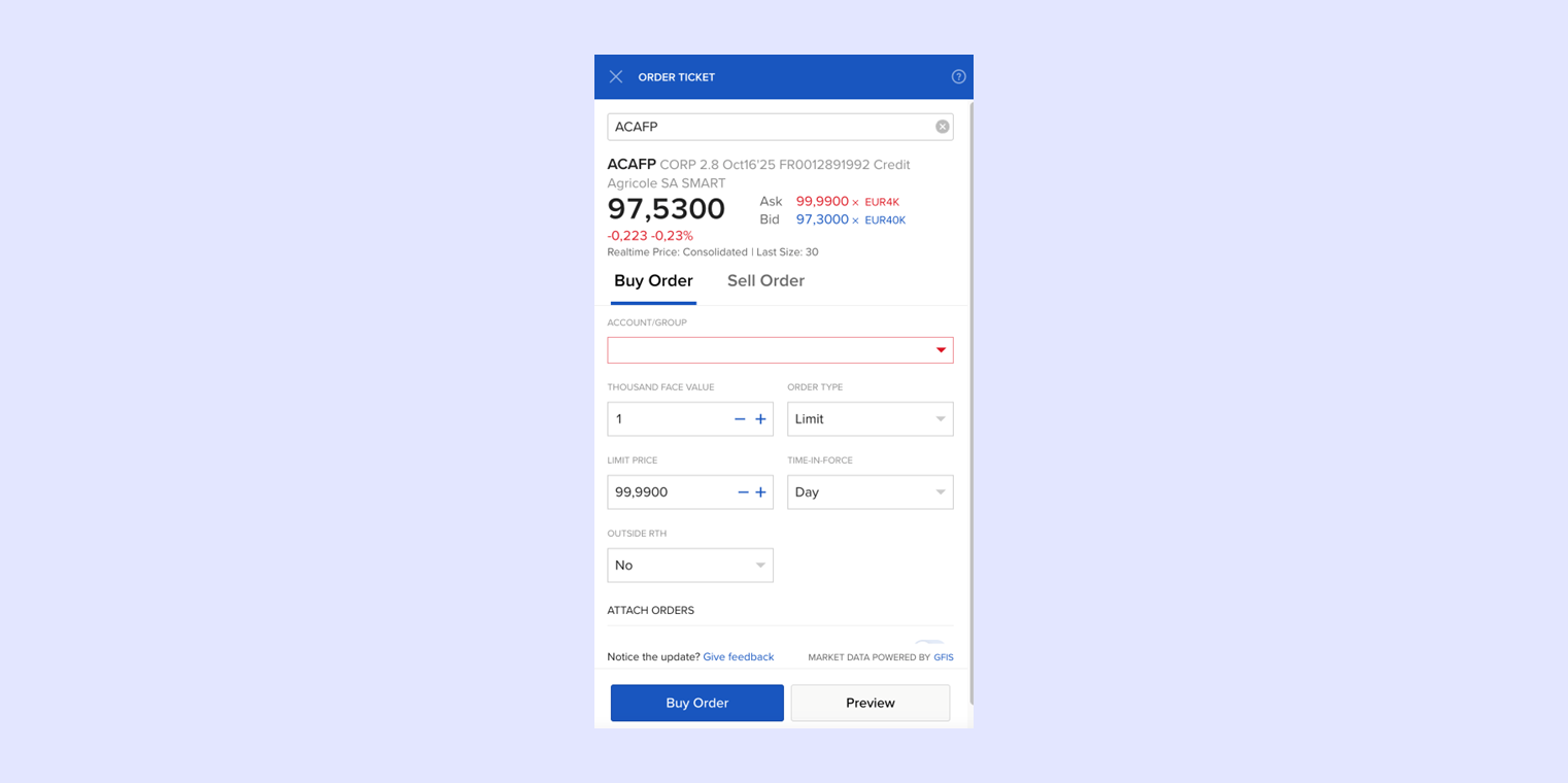 The platform will display all available trading routes for bonds. In the example above, you have the option to trade a bond either via SmartRouting or directly via Euronext.
