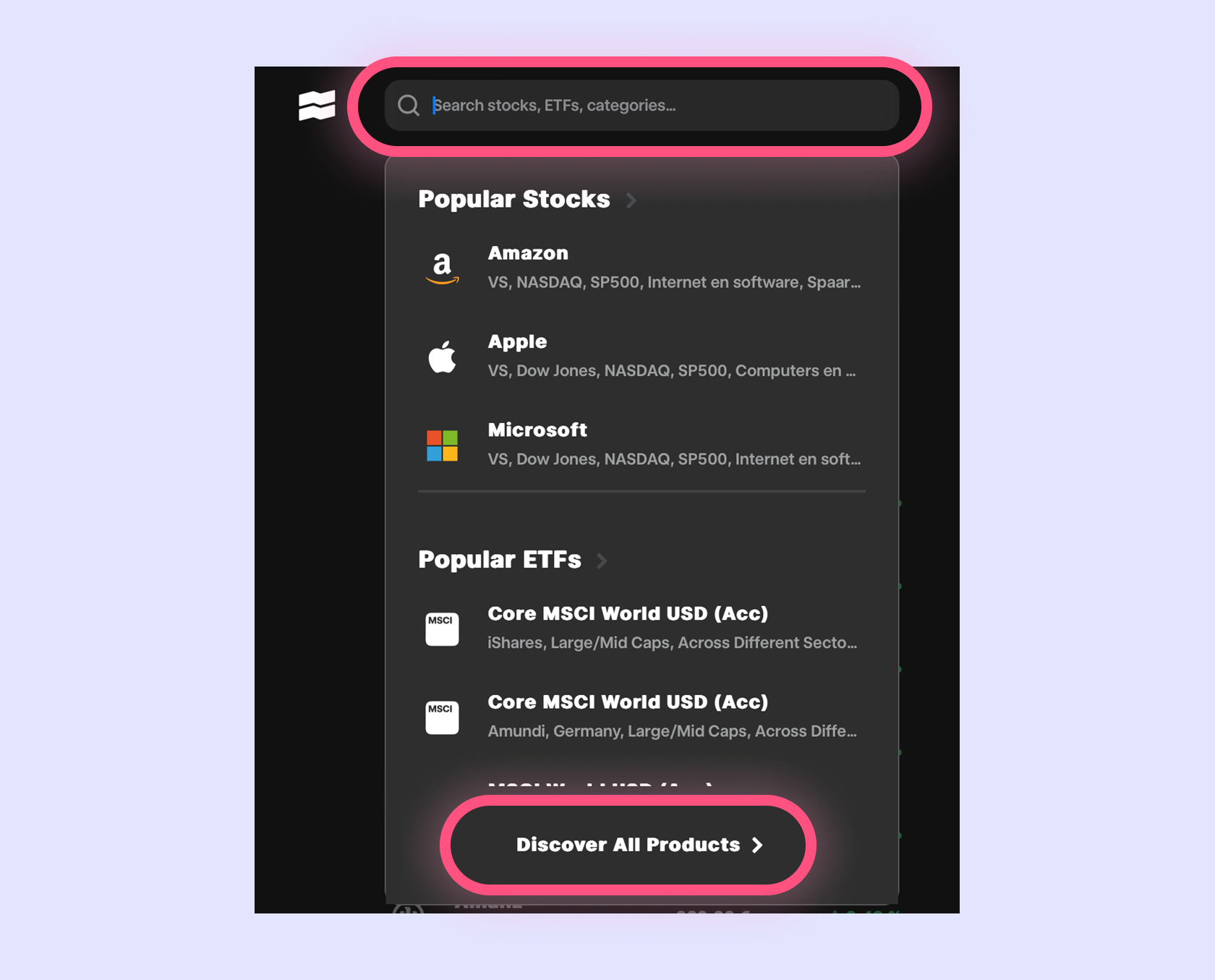 Trade Republic's platform is user-friendly and accessible via both mobile and desktop versions. To explore bonds, simply use the search bar, select 'Discover all products,' and then the 'Bonds' tab. Bonds can also be searched by name or ISIN.