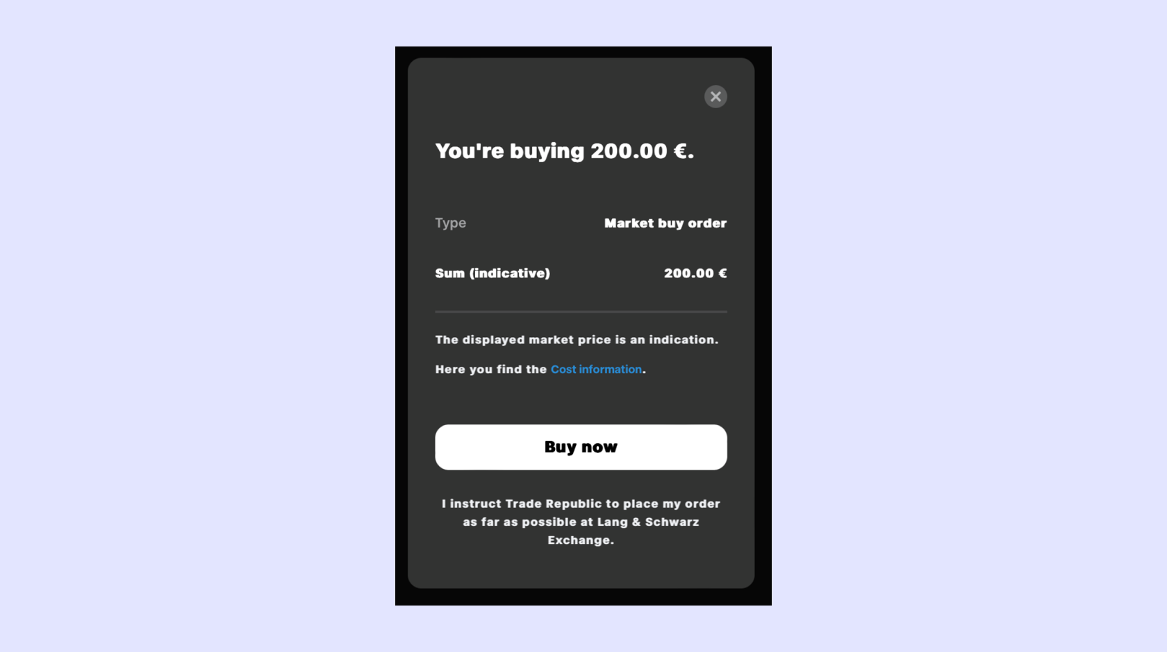 Member of EdW: Trade Republic's membership in the Compensatory Fund of Securities Trading Companies (EdW) provides added security. It covers liabilities from securities transactions up to 20 000 Euros per investor.