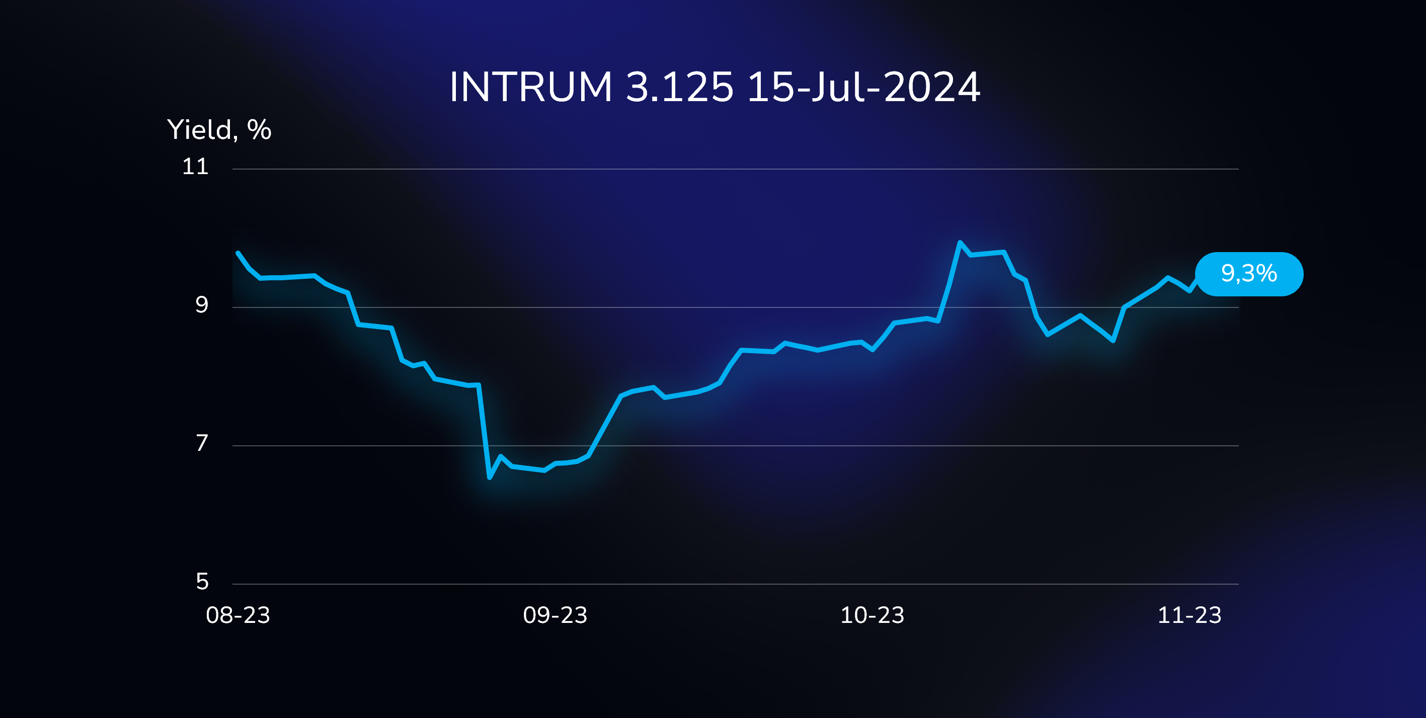 The bond in focus is the INTRUM 3.125 15-JUL-2024 EUR (XS1634534017). Over the past month, the bond has witnessed a substantial shift in its yield, surging by 56 basis points to 9.3%.
