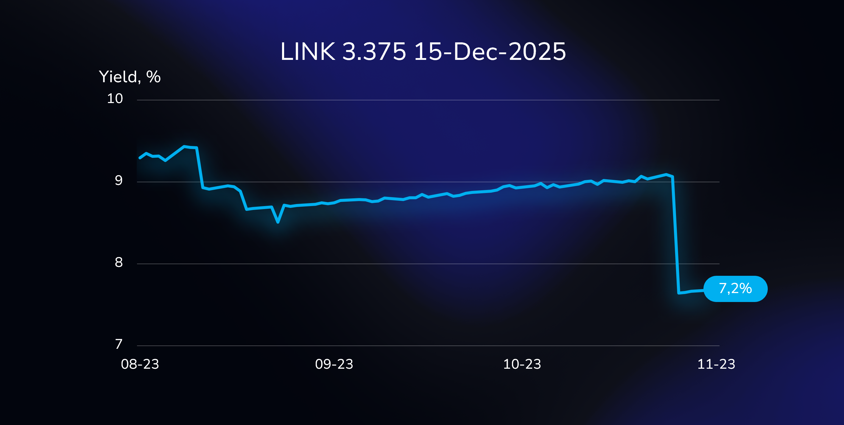 Amidst recent market dynamics and corporate decisions, the bond in focus, LINK 3.375 15-DEC-2025 EUR (NO0010911506), has undergone a significant yield shift. Over the past week, its yield has seen a substantial decrease of 141 basis points, now standing at 7.2%.