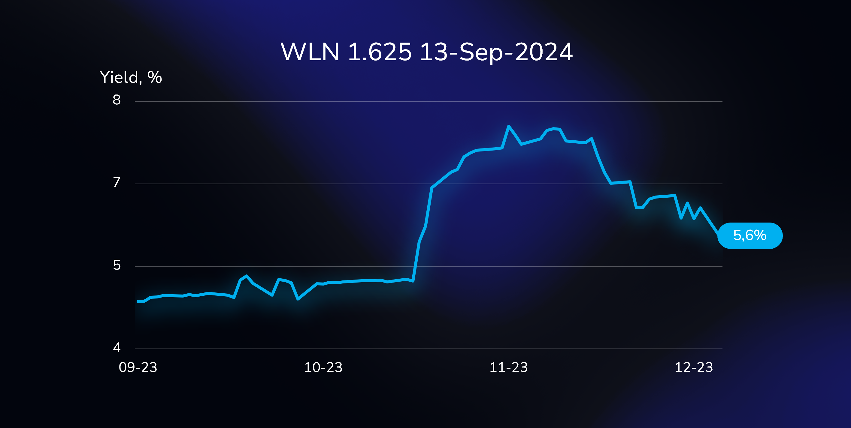 The WLN 1.625 13-SEP-2024 EUR (FR0013281946) bond witnessed a notable shift in its yield, experiencing a 73 basis points decrease to 5.6% within the week.